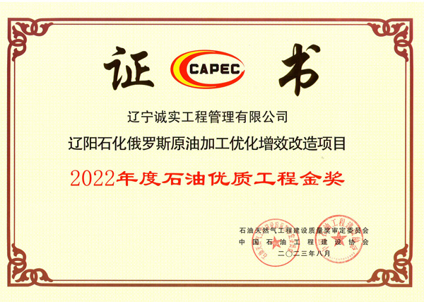 2022年度石油優(yōu)質(zhì)工程金獎