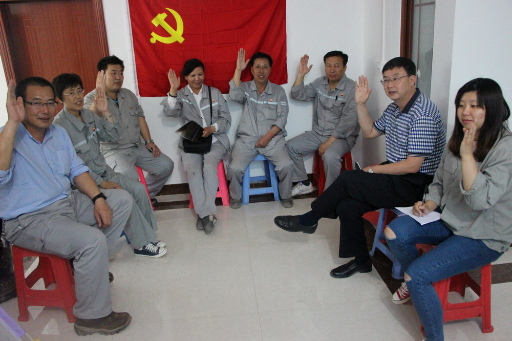 我公司監(jiān)理的中海油惠州煉化“三聚”項目,去年末開工,現(xiàn)場近28名員工,其中黨員8人。隨著工程進展人員還要增加,建立基層黨組織,發(fā)揮黨員先鋒模范作用,出色的為業(yè)主服好務,是公司黨委工作目標。由黨委提名,任潤東、劉金剛、韓英麗三人組成黨支部。選舉通過后,支部書記任潤東做了表態(tài)發(fā)言,黨委書記孫學良就本項目意義,黨員義務和責任做了講話。