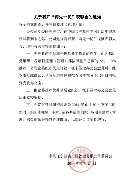 關(guān)于召開“兩先一優(yōu)“表彰會(huì)的通知