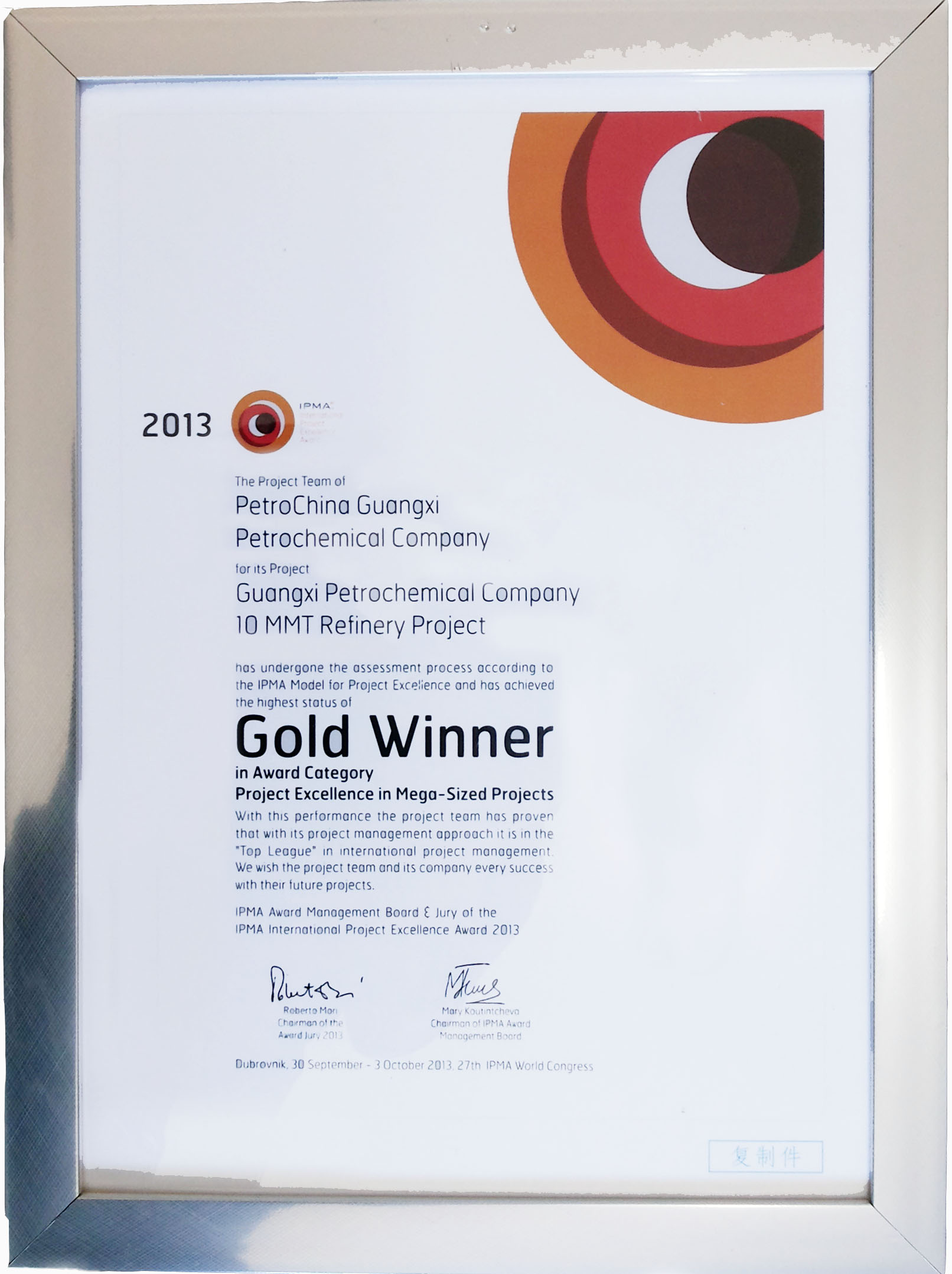我公司承接了中國石油廣西石化千萬噸煉油項目,該項目榮獲IPMA國際卓越項目管理金獎