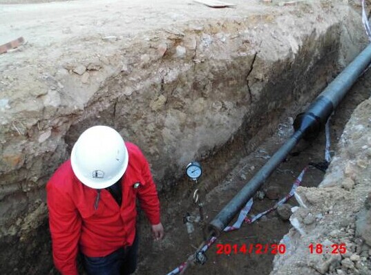消防水管做水壓試驗,地下管網完成70%